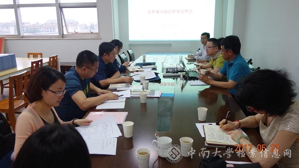 5月24日下午,湖南省档案局宣传教育法规处处长黄光斌一行4人对taptap官方网站2014年以来贯彻执行《中华人民共和国档案法》和《湖南省档案管理条例》的情况进行了行政执法检查。学校副校长黄健陵出席检查情况反馈会。学校档案馆馆长乔硕功作了题为“依法管档、夯实工作基础,开拓创新、服务学校发展”的自查工作汇报,从档案工作组织管理、文件材料归档整理、安全管理、档案编研与校史研究、档案信息化建设等七方面介绍taptap官方网站近三年档案工...