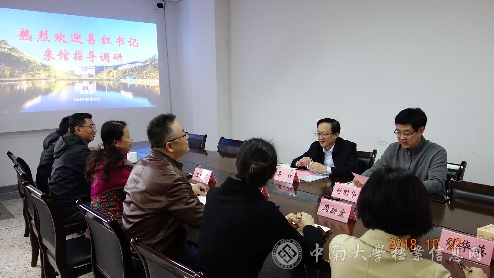 10月22日下午,校党委易红书记来档案馆指导调研档案工作,学校办公室主任付刚华、档案馆馆务会成员参加调研座谈会。乔硕功就档案馆工作现状、近年成绩、存在不足、努力方向等四个方面作了汇报。近五年来,档案馆在学校领导的关心指导下,档案资源体系、档案利用体系、档案安全体系建设都取得了长足的进步和发展,但仍存在人才队伍建设乏力、场馆面积严重不足、监管指导功能弱化等问题和困难。易书记听取了汇报后,首先,对档案...