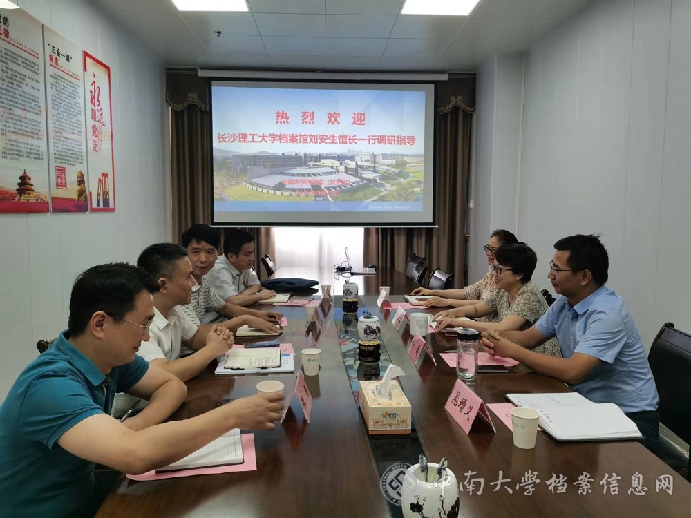 9月29日,长沙理工大学档案馆馆长刘安生一行来校调研,学校档案馆馆长张朝晖、副馆长周新宏及相关科室主任等参与座谈研讨。