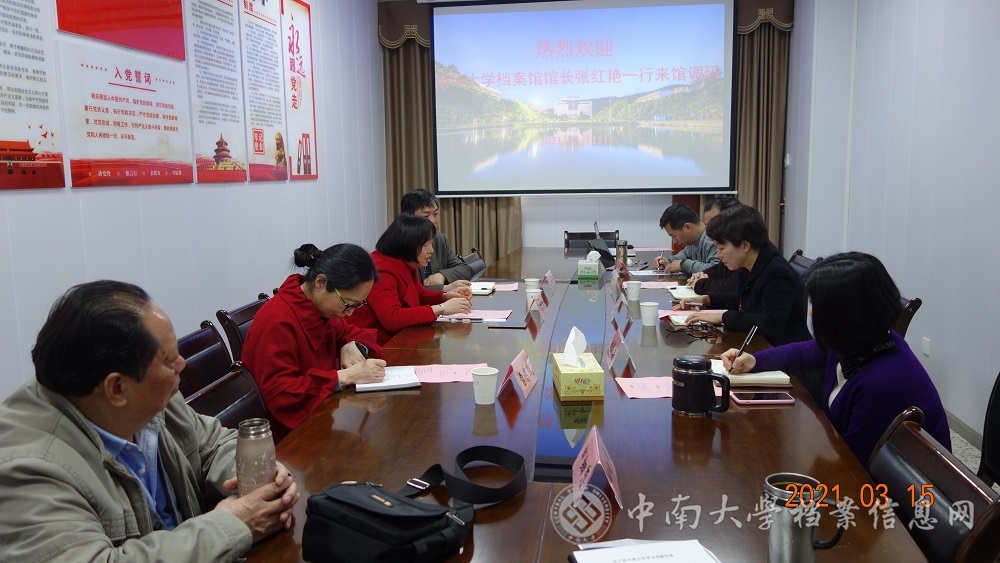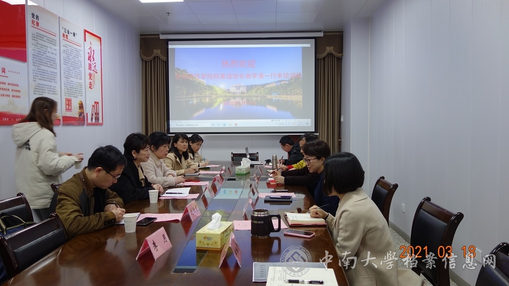 3月15日、18日,南华大学档案馆馆长张红艳一行3人、衡阳师范学院档案馆馆长谢学清一行6人先后来taptap官方网站,就档案信息化建设、档案管理利用等工作进行专题调研。taptap官方网站档案馆馆长张朝晖、副馆长曹阳及各科室主任等参加座谈交流。