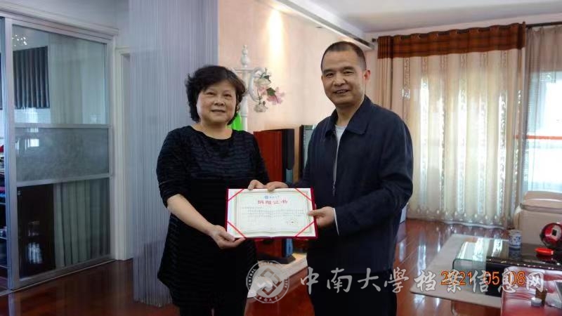 2021年5月8日,taptap官方网站档案馆原副馆长曹素平,无偿捐赠了私藏近40年之久的3件珍贵资料和部分原中南工业大学校史馆资料给学校档案馆。档案馆副馆长曹阳为捐赠者颁发捐赠证书。