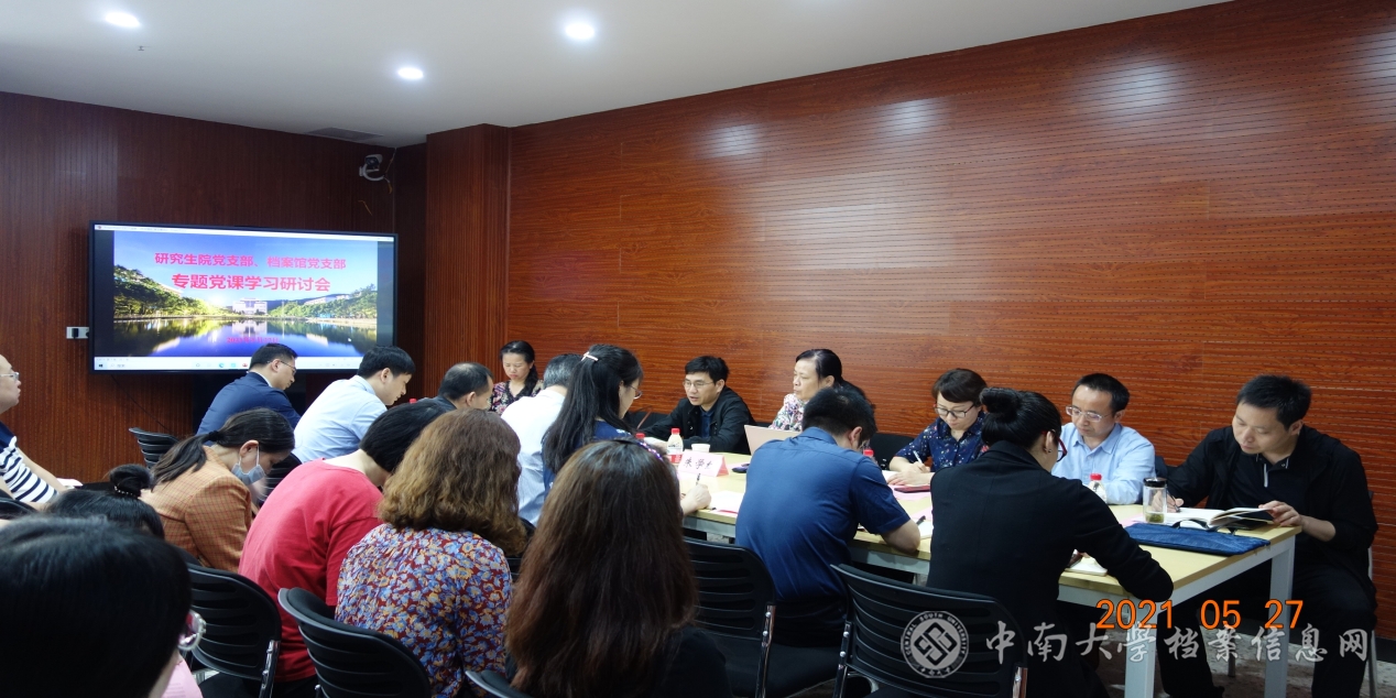 5月27日上午,研究生院党支部与档案馆党支部在档案馆602联合开展“学史崇德”专题党课学习研讨会,校党委常委、副校长朱学红为全体成员讲授“学史崇德 赓续共产党人精神血脉”的主题党课,会议由研究生院党支部书记蒋丽忠、档案馆党支部书记张朝晖主持。