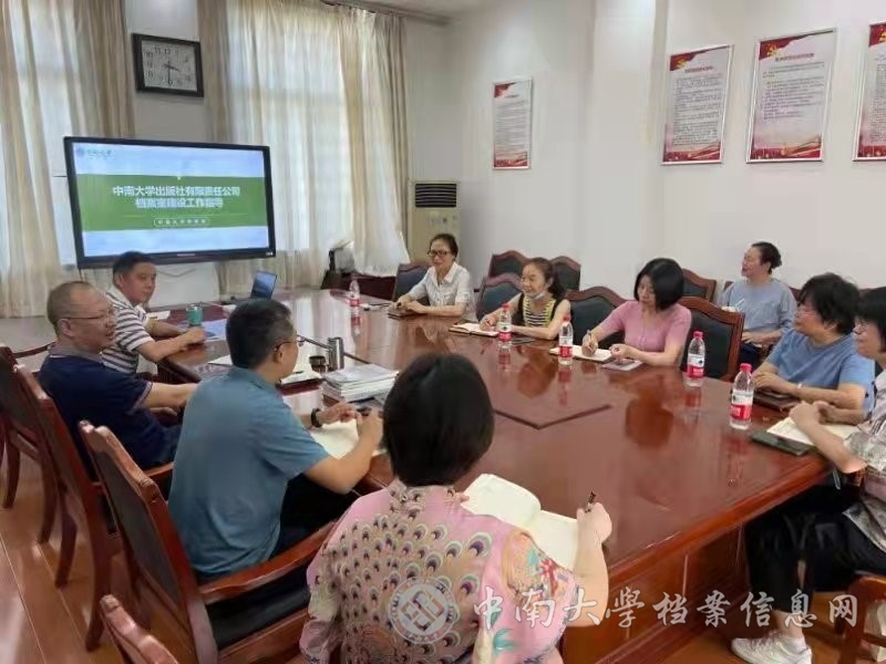最后,吴湘华社长对档案馆一行的到来表示感谢,他说出版社一直非常重视档案工作,学校出版业务的长足发展更是对档案分室建设提出了现实需求,并明确了接下来落实出版档案分室建设的几个要点:一是明确档案室建设责任人,构建涵盖各个部门的出版社档案工作网络图;二是结合出版社实际工作,细化出版社各类档案的归档范围和整理细则;三是结合行业特点及本单位实际,建立起涵盖档案收集、保管、利用、统计、鉴定、销毁等多方面的制度体系;四是主动接受学校档案工作监督检查,将档案工作纳入本部门考核范围,构建部门-单位-校档案馆的三级监督体系,确保档案质量。