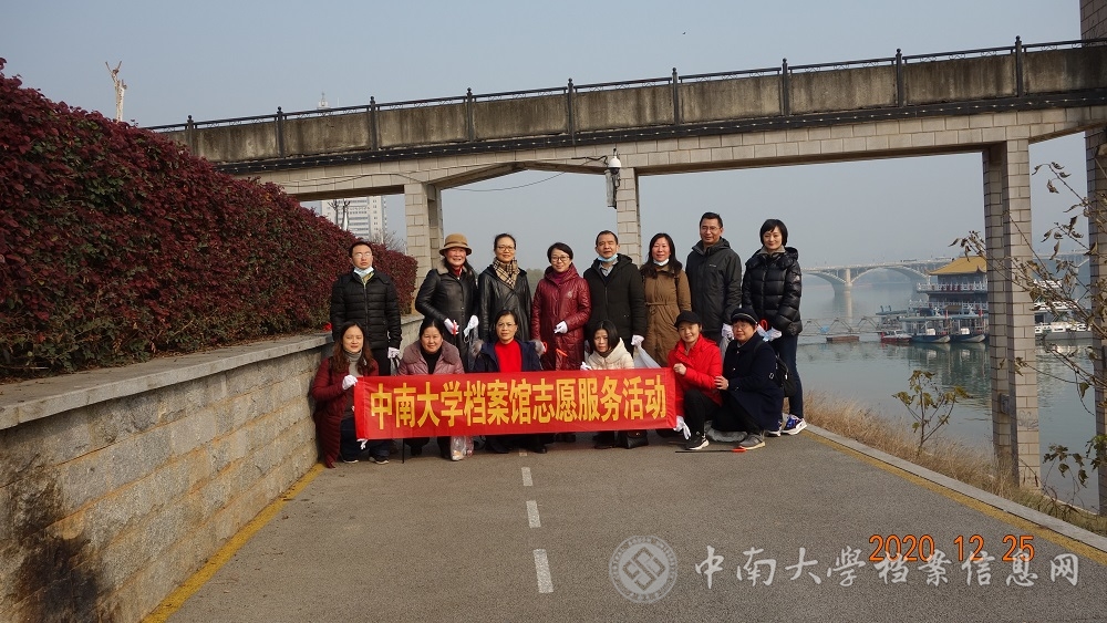 12月25日,为树立文明的生活方式,宣传环境保护意识,档案馆组织全体职工到湘江风光带开展“湘江环保”志愿服务捡垃圾活动。