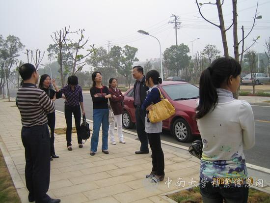 参观人员一行首先来到了学校体育场。讲解人员介绍道:体育场采用乙级体育建筑标准,建筑面积为15346㎡,18000座,框架结构,气势恢弘,外形颇似国家体育场,被全校师生戏称为“中南鸟巢”。与体育场遥相呼应的是各教学大楼,教学楼端庄、恬静、大气,错落有致的楼梯,墨绿色玻璃连廊与天井中的香樟树相互映衬,充满了浪漫与典雅。教学区的周围,小桥流水,亭台水榭错落有致。学校大门就像伸开的臂膀环抱着湘江,将岳麓山、学校、湘江连成了一副完美的山水画卷。面对此情此景,很多同志都表示为学校的新貌而自豪。