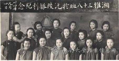 | 1945年10月14日王昌璧校友(前排左一)与同班学友在沅陵时的留影。 |