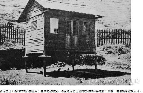 4、贵阳老鼠多,常易把实验小动物咬死。防止的简单办法是:他按白施恩教授的设计,把小动物室用木柱升高,并在柱子中段用园尖物栏住,以防止老鼠往上爬。